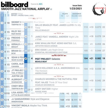 - Ferencz Péter „Peet”: 2015-ben a negyedik lemezünk egyik dalával, a "Jazz & Wine"-nal kerültünk fel először, ezt követte 2017-ben a Dave Kozzal közös "Rosy Cheeks" az ötödik lemezünkről, majd 2020 tavaszán a legfrissebb lemezünk Paul Brownnal közös dala, a "Let’s Do This" került fel. Most ugyanerről a lemezről a "Galaxies" jutott a legjobb 30 közé és egyúttal Kanadában ezzel a dalunkkal értük el a zenekar első pozícióját is.